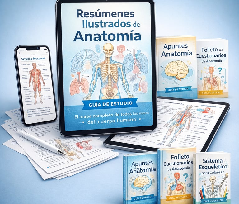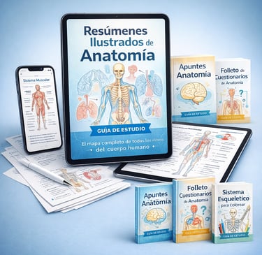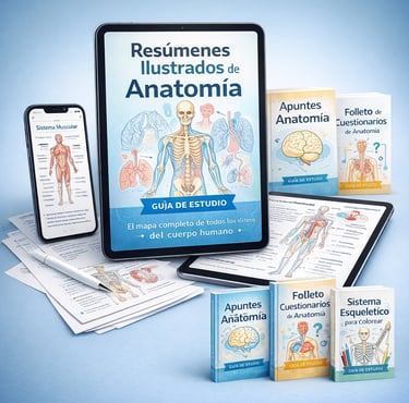 Deja de perder horas con libros y diapositivas confusas. Aprende Anatomía con resúmenes claros y 100% visuales, diseñados para ayudarte a estudiar mejor y aprobar tus exámenes.